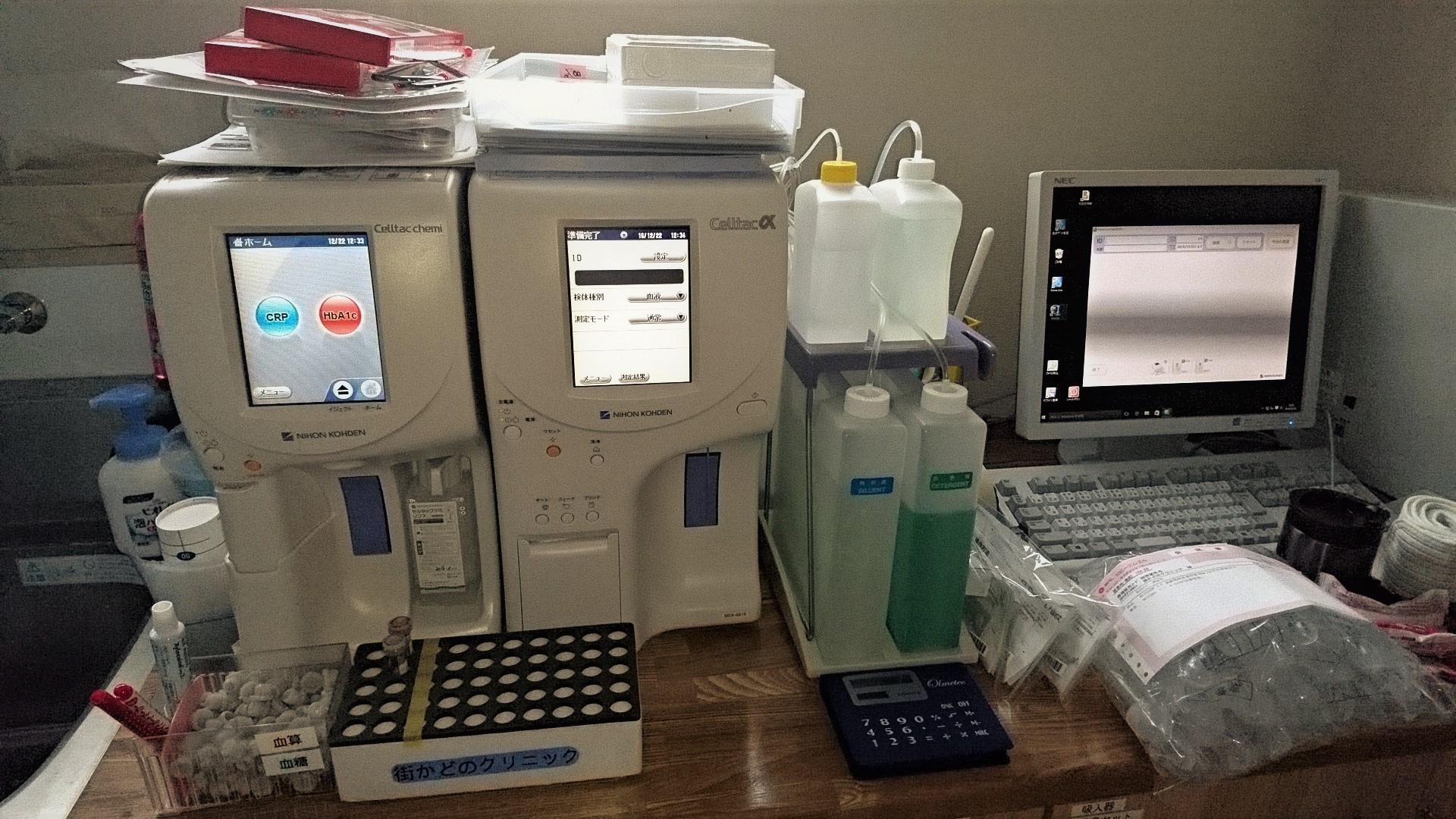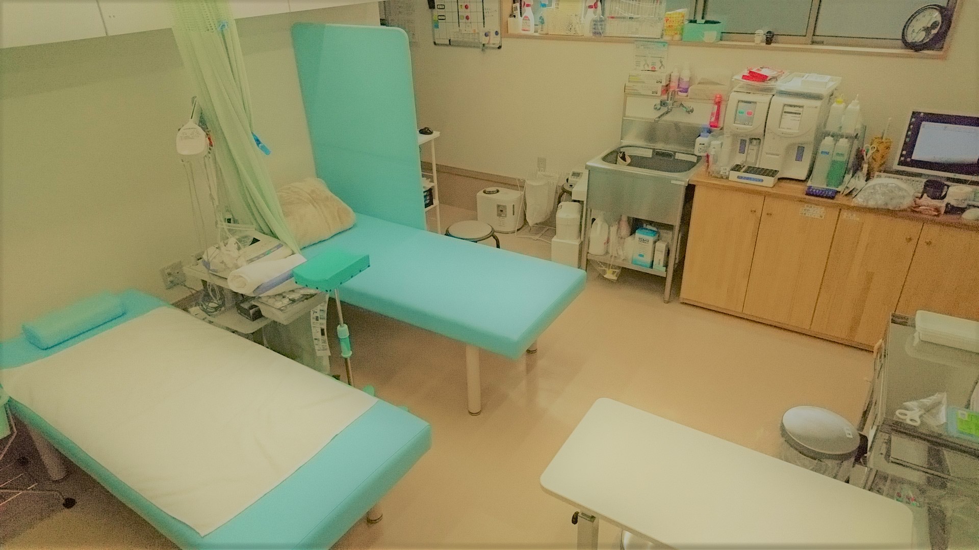 上の写真が処置室です。採血や点滴・投薬、そして心電図などの検査を行います。
